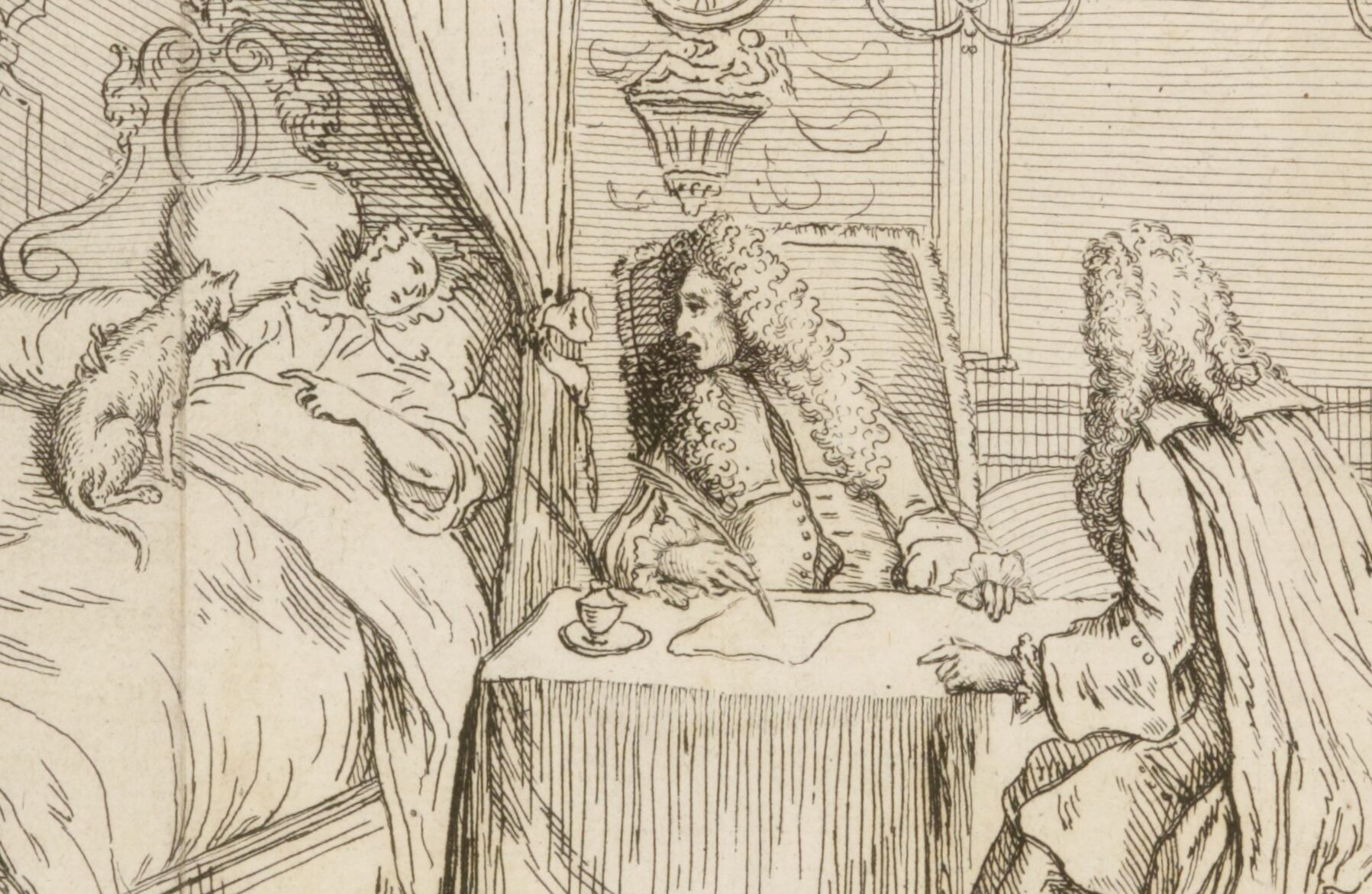 Charles-Antoine Coypel, Grafika z pierwotnego wydania „Les Chats” Paradis de Moncrifa, 1727.