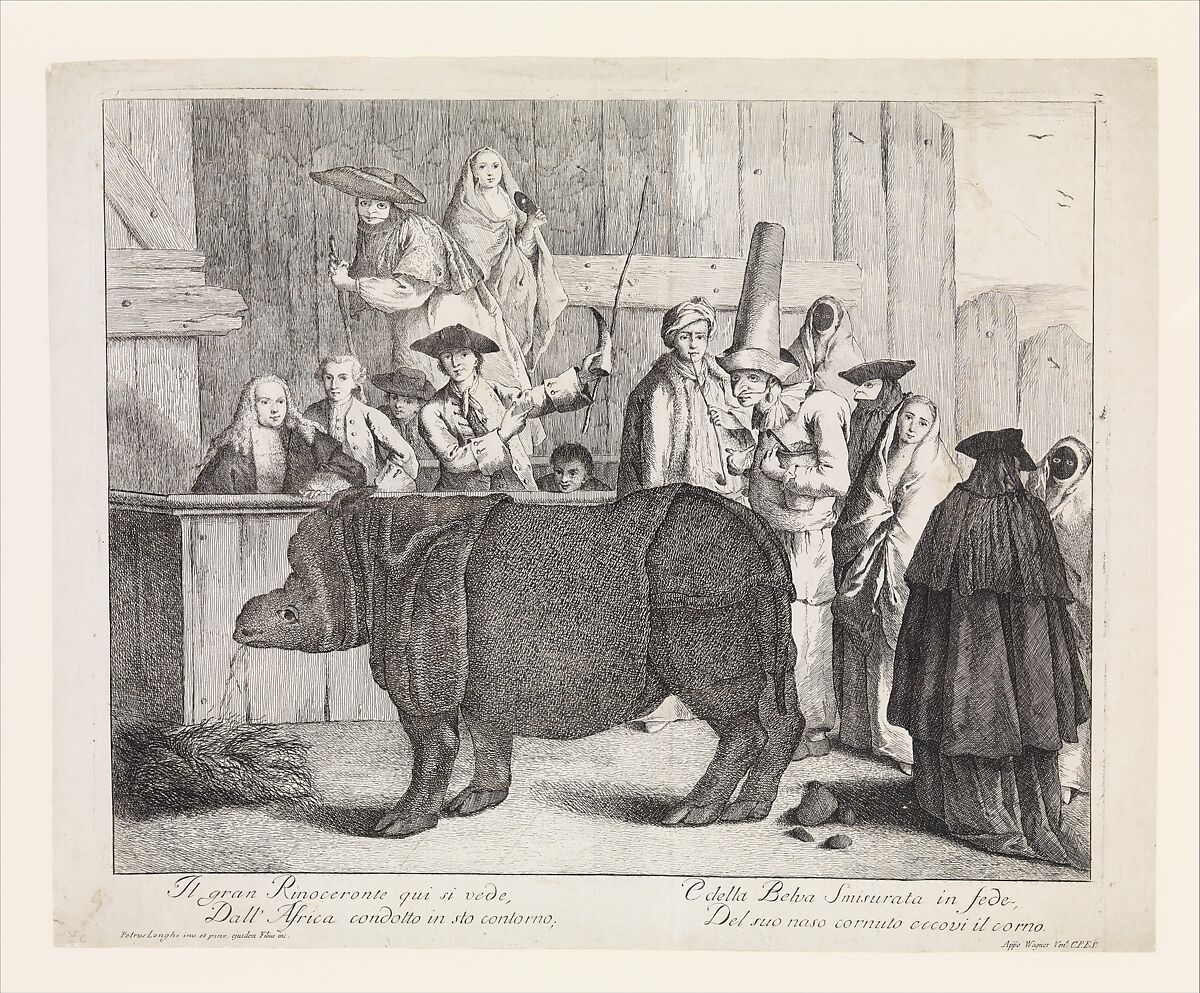 Alessandro Longhi "Nosorożec", rycina, XVIII wiek, fot. The Elisha Whittelsey Collection/Domena publiczna.