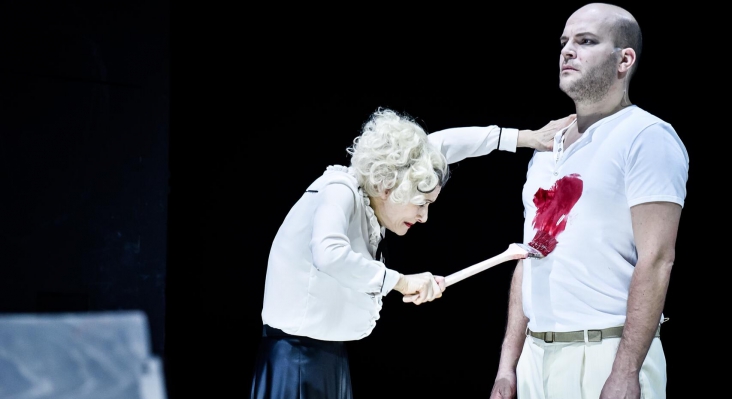 Zadziwiająco współcześnie zabrzmiała szekspirowska diagnoza tyranii w spektaklu Karin Henkel Rom z Deutsches Theater Berlin (premiera 16 marca 2018 roku) zaprezentowanym na deskach gdyńskiego Teatru Muzycznego w ramach 23. Festiwalu Szekspirowskiego w Gdańsku. Na podstawie trzech sztuk Shakespeare’a – Koriolan, Juliusz Cezar i Antoniusz i Kleopatra – reżyserka wraz z dramaturgiem, Johnem von Düffel, stworzyła kompilacyjną, spójną narrację moralnej katastrofy, do której prowadzi ludzka hybris karmiona zaszczytem władzy. Co istotne, ta rozpisana na trzy akty opowieść, formalnie przywołująca wydarzenia z historii starożytnego Rzymu, nie jest w żadnej mierze realistyczną narracją prowadzoną w ramach zamkniętego dramatycznego kosmosu, lecz raczej rodzajem wykładu wygłaszanego przez jedną z postaci (w języku angielskim), którego zasadniczy rdzeń stanowią sekwencje scen rozgrywających kluczowe elementy szekspirowskich sytuacji tragicznych (w języku niemieckim). Tym samym całość spektaklu zawiera się w formule opracowanej już w teatrze starożytnym, gdy aktor przechodzi od stylu mimetycznego do diegetycznego (i vice versa), czyli gdy przestaje „grać”, a zaczyna „opowiadać”, przy czym w spektaklu Karin Henkel jest to narratorski bezpośredni zwrot do publiczności.