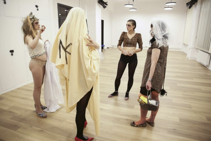Wyznaczona na dzień 15 listopada premiera spektaklu online stanowiła moment udostępniania na stronie internetowej „Krytyki Politycznej” dziewięciu fotografii wykonanych przez Alinę Gajdamowicz, Katarzynę Niedurny, Idę Ślęzak i Stanisława Godlewskiego oraz trzech tekstów napisanych przez krytyczki i krytyka zaproszonych na pokazy. Sześć fotografii przedstawia performerki z Teraz Poliż (Dorotę Glac, Martę Jalowską, Kamilę Worobiej) w jasnej przestrzeni sali teatralnej, w makijażach i kostiumach. Nie wiem, czy zostały wykonane w trakcie spektaklu. Podejrzewam, że nie. Trzy pozostałe przedstawiają rozmaite scenerie, w których pojawiają się przygotowywane na listopadową „premierę” teksty o spektaklu. Honor nie został zarejestrowany w formie audiowizualnej, nie był streamowany, nie zaprezentowano go publiczności zgodnie z zasadami reżimu sanitarnego. Po Honorze pozostało miejsce, w którym nie ma już spektaklu, ale nie jest to miejsce puste. Jest ono wypełnione bardzo dynamicznym ruchem wielu elementów składających się na całość materiałów. Ruch ten wynika po części z wewnętrznych relacji pomiędzy owymi elementami, a po części z napięć pomiędzy spektaklem pokazywanym 31 października w świetlicy „Krytyki Politycznej”, a rzeczywistością ulic i placów na których w tym samym czasie odbywały się protesty przeciwko orzeczeniu Trybunału Konstytucyjnego dotyczącego możliwości zaostrzenia przepisów regulujących prawo aborcyjne oraz rzeczywistością wirtualną, w której w tamtym czasie pojawiały się kolejne głosy oskarżające Włodzimierza Staniewskiego o stosowanie przemocy wobec artystek związanych z Ośrodkiem Praktyk Teatralnych „Gardzienice”.