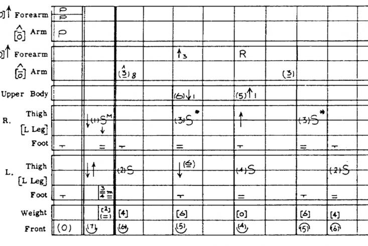 W późniejszych stuleciach, w których doszło najpierw do krystalizacji języka baletu klasycznego, a potem do wyłonienia się praktyk destabilizujących jego reżymy, osoby badawcze i artystyczne wielokrotnie modyfikowały strategie notacyjne, raz stawiając na język rycin, kiedy indziej zbliżając się do abstrakcyjnych i hermetycznych form partytur muzycznych. Obecnie do najpopularniejszych systemów notacji tańca należą te opracowane w pierwszej połowie dwudziestego wieku przez Rudolfa Labana (kinetografia / Labanotation) oraz matematyka Rudolfa Benesha i tancerkę Joan Benesh (notacja Benesha). Pierwsza z nich pozwala na zapisanie kolejnych kroków i pozycji ciała z uwzględnieniem ich czasowości, dynamiki oraz przestrzenności. Umożliwia archiwizację różnych, nie tylko tanecznych, działań. Druga, jak tłumaczy Hanna Raszewska-Kursa, „za pomocą znaków rozmieszczonych na poziomej pięciolinii przedstawia kolejne pozycje ciała i trasy pokonywane przez części ciała pomiędzy kolejnymi pozycjami”, a jako taka służy przede wszystkim do zapisu tańca klasycznego3.