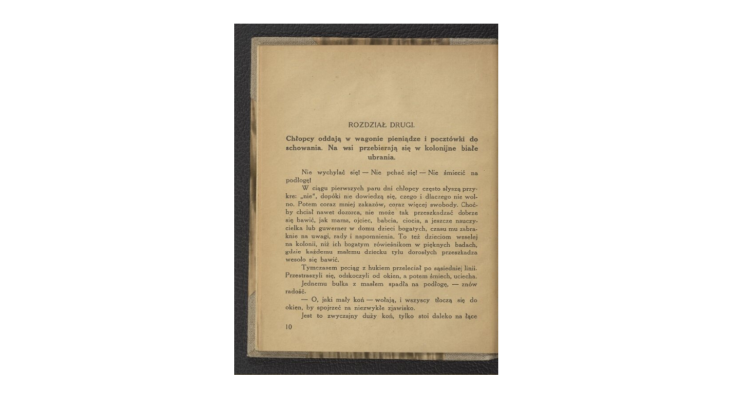 Z książką Mośki, Jośki i Srule i (powiedzmy, że w mniejszym stopniu) jej bliźniaczką, to jest Józkami, Jaśkami i Frankami, historia obeszła się brutalnie. Parafrazując Hansa Roberta Jaussa, można powiedzieć, że okazały się one nader „otwarte na wypadki dziejowe”1. Cień na te dwie nieduże książki, publikowane na łamach ilustrowanego (dwu)tygodnika dla dzieci „Promyk” w latach 1909-1910, wydane w formie książkowej odpowiednio w 1910 i 1911 roku, pada już na pierwszych stronach: ponieważ rzecz traktuje o dziecięcych koloniach (w pierwszym wypadku dla dzieci żydowskich, w drugim dla dzieci polskich), nie powinno dziwić, iż zaczyna się na dworcu kolejowym, w tłumie podekscytowanych chłopców udających się na wieś. „Przed dworcem dozorcy ustawiają chłopców w pary i prowadzą do wagonów”, brzmi tytuł pierwszego rozdziału Mośków…2: chłopcy żydowscy udają się do posiadłości „Michałówka” w powiecie ostrowskim (najbliższa stacja kolejowa we wsi Małkinia), chłopcy polscy – do „Wilhelmówki” w powiecie ostrołęckim (stacja Pasieki). Ten obraz dworcowego tłoku będzie dla mnie kluczowy.