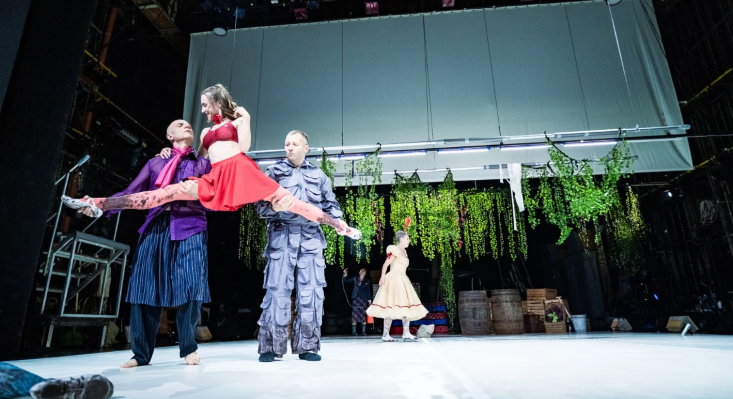 Albo klimaks tego spektaklu, taniec z krzesłami. Uwielbiam tę scenę. Duża część choreografii powstała do muzyki Chopina, zanim jeszcze my cokolwiek napisałyśmy. Dopiero na podstawie tego ruchu i ekspresji aktorów zbudowałyśmy z Magdą duży utwór, powiedziałabym, dość klasycznawy. Więc działo się to odwrotnie, niż by się można było spodziewać. I super, że tak się stało, bo dało to wrażenie kontrastu i dzięki temu wyszło dość figlarnie i śmiesznie. To chyba clou tej sceny, trochę sexy, a trochę śmiesznie.