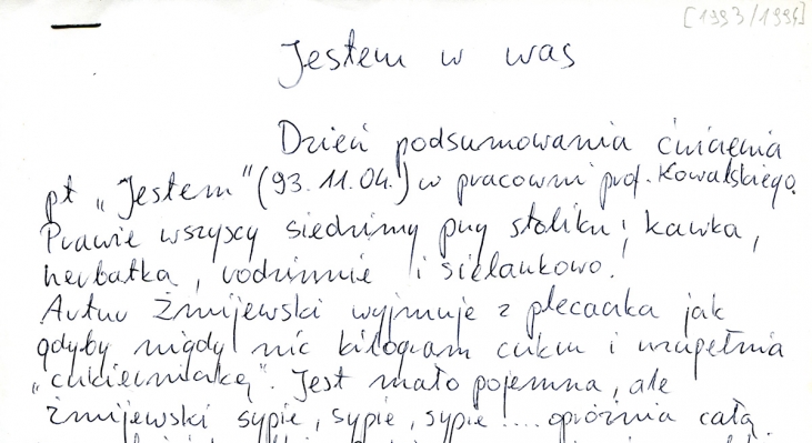 Sytuacja poszukiwania początku bardzo przypomina performans Edwarda Krasińskiego J’AI PERDU LA FIN!!! (zgubiłem koniec). 06edward_krasinski.jpg